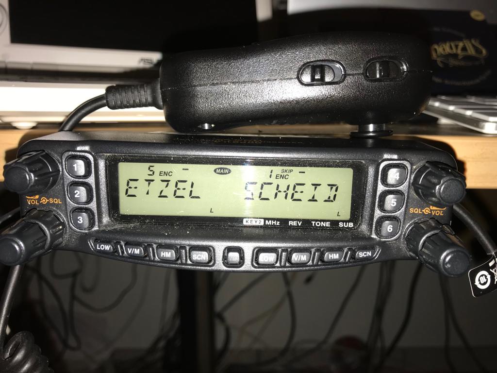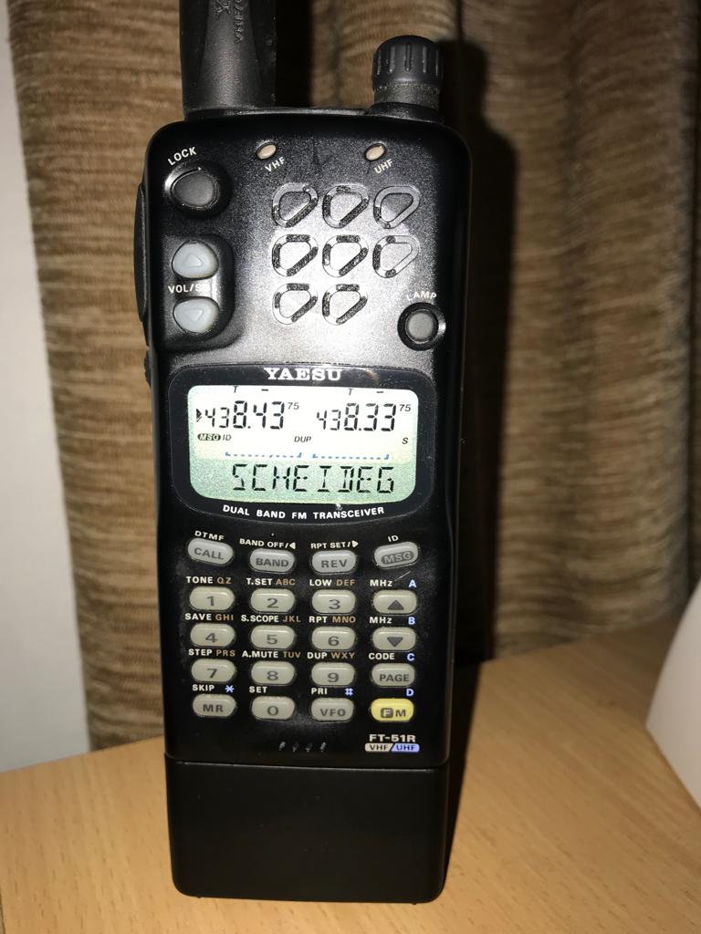 Unterwegs habe ich ein Yaesu FT-51R Dualband Handfunkgerät ( Erstbesitzer ! ) mit jetzt zwei neuen Akkus (vom radio-laden.ch) und Original Kurzantenne oder mit einem 2-Band Magnetfüsschen auf dem Auto. NEU habe ich auch das Orginal externe Mikrofon MH-29 occasion bekommen.